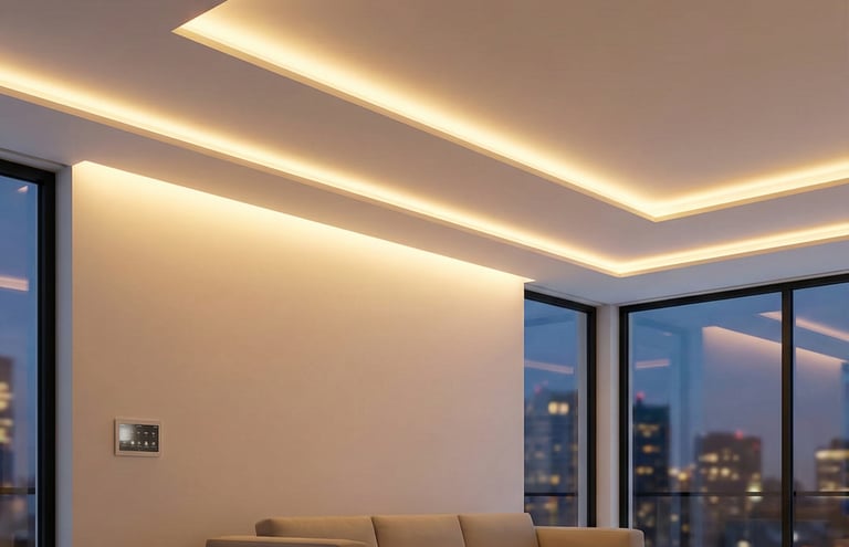 No solo reformamos, creamos ambientes. Diseño de iluminación integrado (foseados, tiras LED) y control inteligente para que tu casa tenga el "efecto WOW" de un hotel de lujo.
